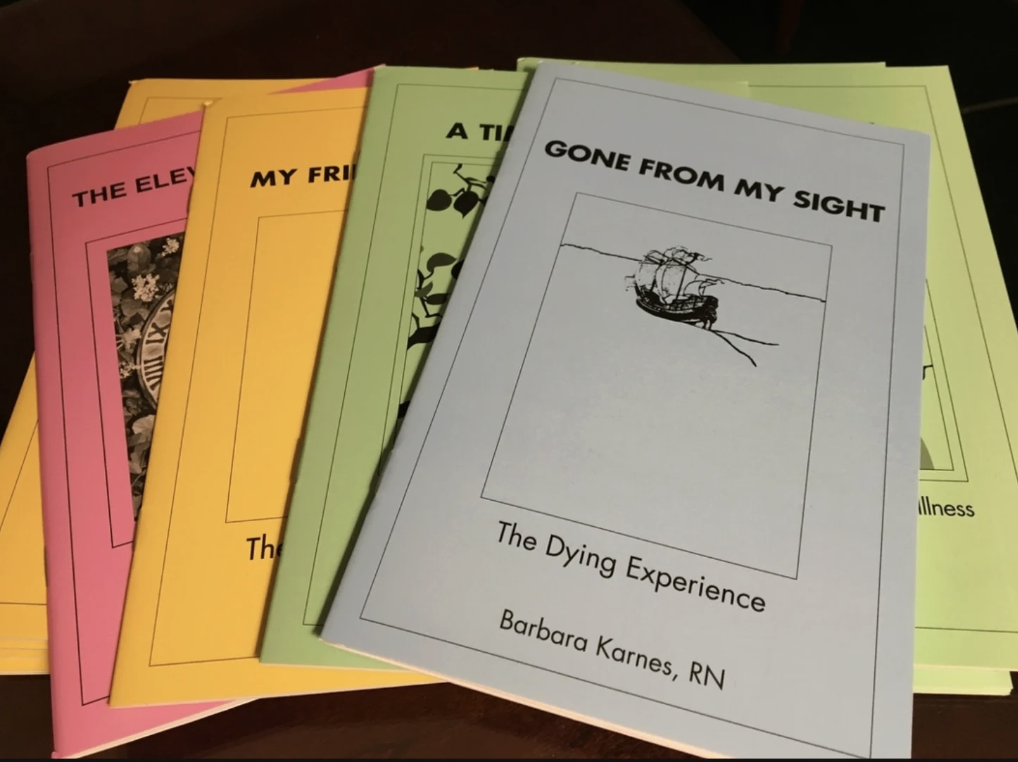 These pamphlets are designed to meet you in the middle of the night; there is nothing complicated or existential about them, just straightforward guidance. No matter how many times I explain the dying process, it is difficult to imagine unless you have experienced it. And every dying process is different, so we cannot cover every possibility.