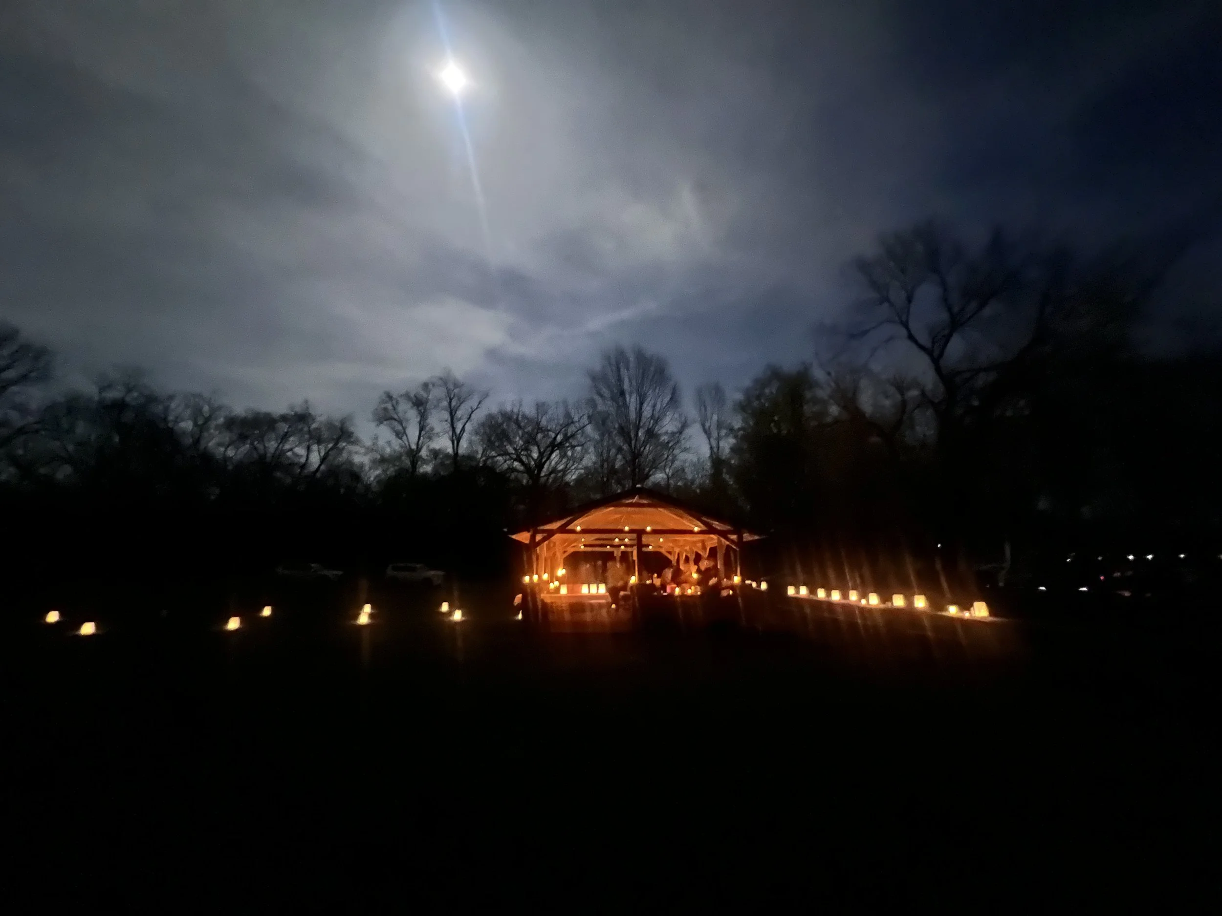 Last weekend, I invited some of my Farewell students to help lead a grief circle for our Middle Tennessee community. After weeks of planning, about twenty people gathered at sunset in a local park, under a candlelit shelter. A luminary-lit path guided the way to a tended fire, while the low, steady hum of sound bowls met the soft edges of classical guitar.